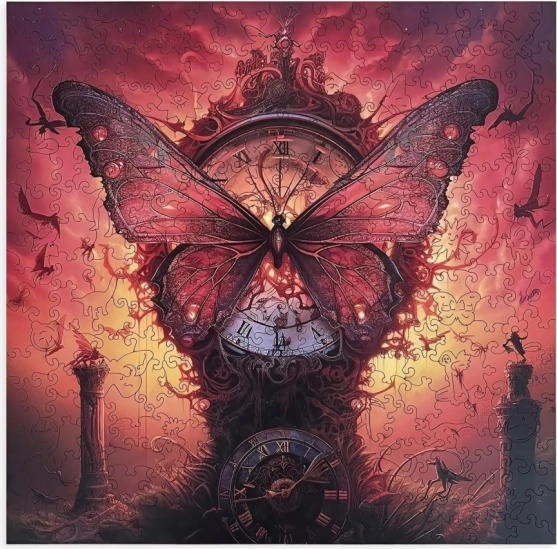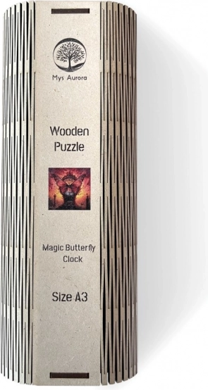 Puzzle di legno Magico quadro ad orologio di farfalla offre un'esperienza unica grazie ai disegni e schemi originali. Scopri il potenziale creativo con forme insolite di pezzi, ognuno con una propria forma.
