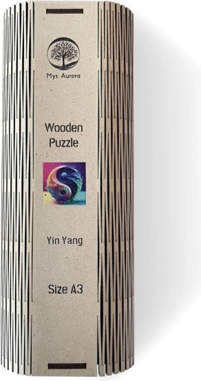 Scopri la magia del puzzle in legno Yin Yang, che sotto le tue mani darà vita a bellissimi motivi e forme. Ogni pezzo è unico e offre forme insolite ispirate alla natura, inclusi animali e piante. Il puzzle è realizzato con materiali riciclati, il che ne aumenta il valore ecologico.