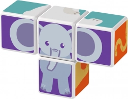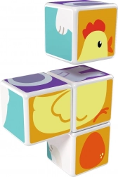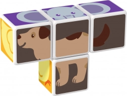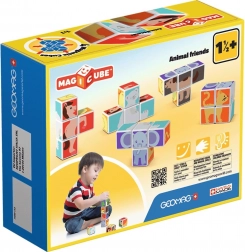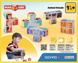 Cubi di plastica con motivi di animali. I cubi sono magnetici, quindi i bambini possono assemblare oggetti tridimensionali. Possono costruire un cagnolino polare, una gattina, una gallinella, un orsacchiotto, un cavallino, un elefante oppure un camino o un recinto per gli animaletti. Ampliate le possibilità di gioco acquistando altri set GEOMAG Magicube. I cubi per bambini Magicube favoriscono la coordinazione e la motricità, sviluppano la fantasia e il pensiero logico e motivano a raccontare storie. La confezione contiene 4 cubi magnetici e 6 carte con proposte per assemblare gli animali. Prodotto in Svizzera. video illustrativo cubi magnetici Geomag Magicube