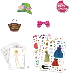 - 8 schede con bambole, 4 fogli di adesivi riposizionabili con abiti e accessori