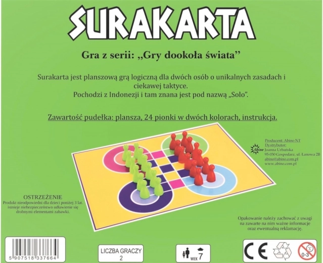Scopri l’originale gioco da tavolo Surakarta dall’Indonesia, che sorprende con le sue regole non convenzionali e il ritmo dinamico. I giocatori spostano le proprie pedine di una casella, ma la cattura avviene esclusivamente lungo archi, offrendo profondità tattica e pianificazione strategica a ogni mossa.