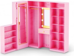 Il Guardaroba dei Sogni Mini Fashion, in rosa, trasforma la cameretta in uno studio di moda. Offre uno specchio con illuminazione, una barra appendiabiti per grucce, mensole per scarpe e borse e una toeletta con sgabello. Grazie alla disposizione intelligente, i bambini imparano a organizzare gli accessori sviluppando al contempo fantasia e motricità fine.