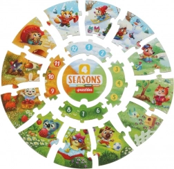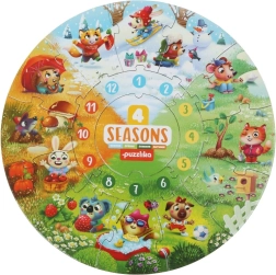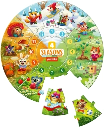 Il puzzle Quattro Stagioni di Puzzlika affascina con un design moderno e creativo, ed è destinato ai bambini già a partire dai 2 anni. Il puzzle assemblato forma un grande cerchio con un diametro di 28 cm, rappresentando attività esterne tipiche di ogni stagione. Questo gioco educativo aiuta i bambini a sviluppare il pensiero logico, l'immaginazione e la motricità fine.