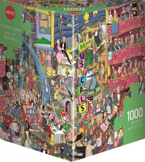 Puzzle del caricaturista Lyon in una originale scatola triangolare, che include un poster come modello per l’assemblaggio.