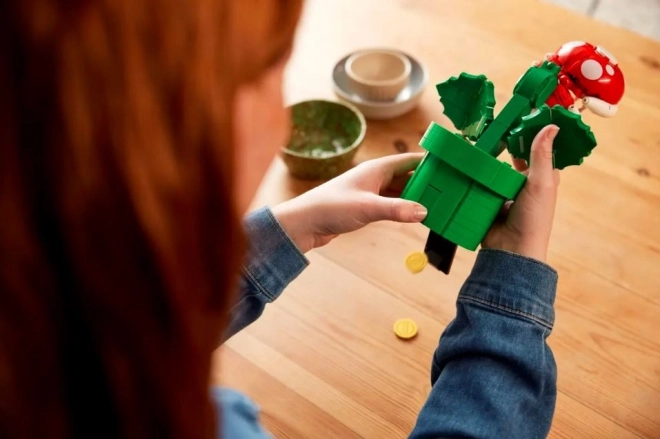 Crea dettagli iconici e posizioni per la testa, i denti, il gambo e le foglie del personaggio dal mondo LEGO Super Mario.