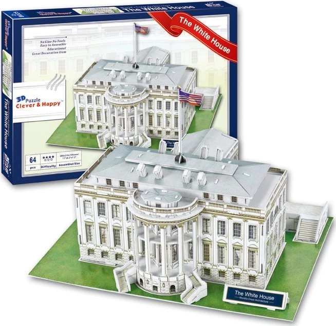 Clever&Happy puzzle 3D Casa Bianca è una perfetta replica della residenza iconica del presidente degli Stati Uniti, che puoi assemblare senza forbici e colla. Questa dettagliata replica 3D presenta una sfida impegnativa con un livello di difficoltà di 4,7 punti, che tutti gli appassionati di architettura e costruzioni adoreranno.