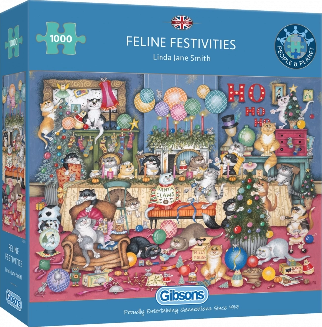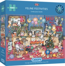 GIBSONS Puzzle Feste dei Gatti rallegrerà ogni amante dei gatti. Il puzzle contiene 1000 pezzi che insieme formano una splendida scena felina.