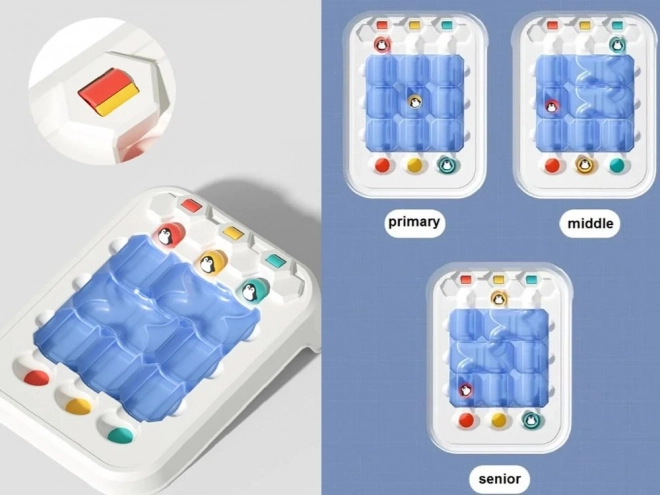 Il set include tutto il necessario per svolgere i compiti, tra cui: tavola di gioco, palline con pinguini allegri e elementi del labirinto. Le dimensioni della base di gioco garantiscono un'esperienza di gioco compatta ma divertente.