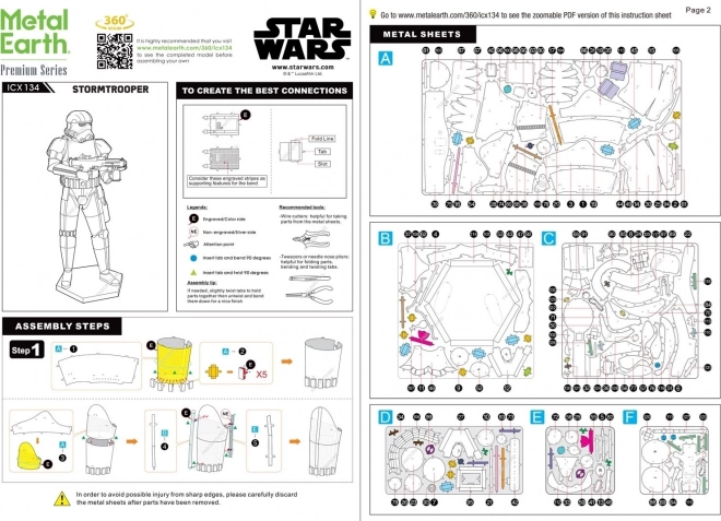 La confezione include tre fogli di metallo con pezzi stampati, pinzette e istruzioni dettagliate per l'assemblaggio. Per unire i pezzi, usare ganci e pinze sottili (non sono incluse nella confezione).