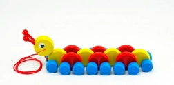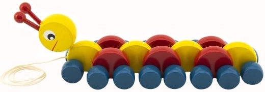 Acquista ai tuoi bambini questo bruco in legno colorato, ideale per lo sviluppo delle abilità motorie dei più piccoli. Quando viene tirato, il bruco si muove strisciando, portando gioia del movimento ai bambini.