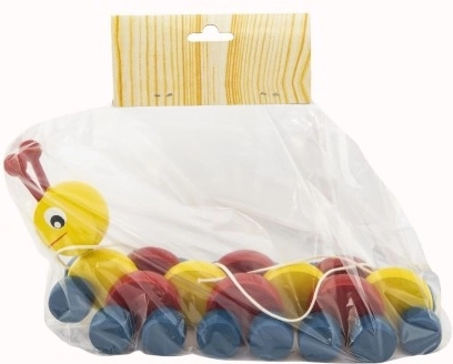 Bruco da tirare in legno lungo 27 cm è il giocattolo perfetto per i bambini piccoli. Legno di qualità garantisce una lunga durata.