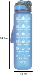Pratica borraccia da 1 l in resistente Tritan che ti aiuta a mantenere l’idratazione per tutto il giorno. Grazie alla cannuccia integrata bevi comodamente senza inclinare la bottiglia, le marcature temporali con frasi motivazionali ricordano di bere regolarmente e il coperchio di sicurezza con blocco impedisce aperture accidentali. Senza BPA, leggera, resistente e perfetta per lo sport, il lavoro e i viaggi.
