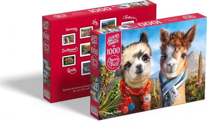 Il puzzle di stile CHERRY PAZZI “Amici per sempre” colpisce per il suo incantevole motivo di due alpaca con sciarpe variopinte sullo sfondo delle montagne e del cielo azzurro. Grazie alla progettazione attenta dei pezzi e alla stampa di qualità, la composizione è scorrevole e divertente sia per principianti che per esperti.