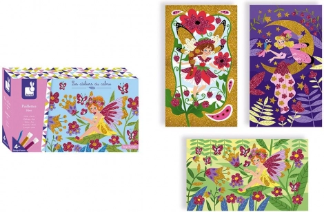 Crea immagini magiche con le fate usando la sabbia colorata del brand JANOD. Il set sviluppa creatività, motricità fine e concentrazione dei bambini. Grazie alle superfici autoadesive e alla spatola, la creazione è facile e pulita; la sabbia in eccesso può essere rimessa nel tubetto.