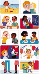 - Impara a riconoscere le emozioni con carte illustrate che rappresentano diverse situazioni quotidiane.