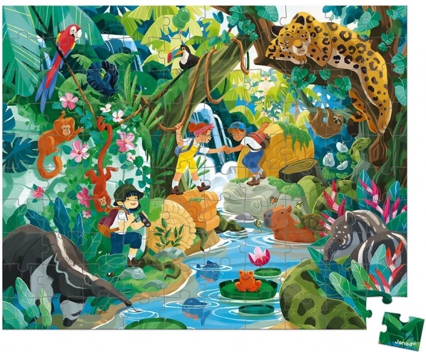 Scoprite il divertente puzzle in valigetta a tema giungla di JANOD. Il set include 100 pezzi che, una volta assemblati, creano una scena colorata con un tempio nascosto. Durante la composizione i bambini sviluppano pensiero logico, attenzione, memoria e motricità fine. La pratica valigetta con manico in tessuto e il poster guida incluso facilitano il gioco a casa e in viaggio.