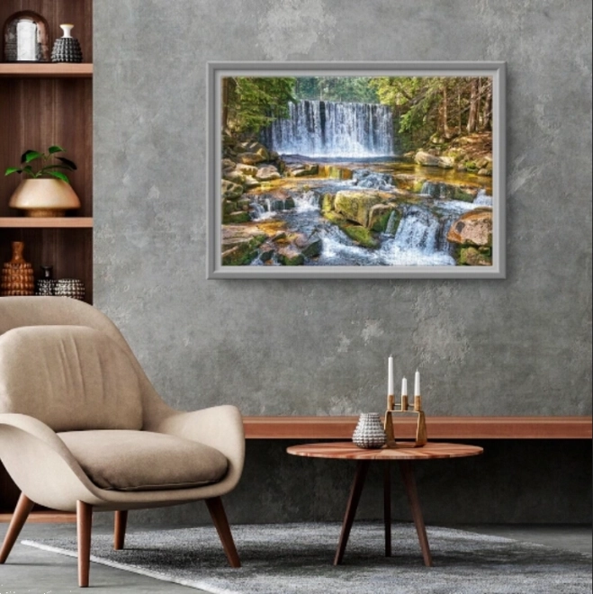 Rilassati componendo un puzzle di grande formato con il motivo della Cascata forestale. Tessere di qualità con taglio preciso e finitura superficiale delicata garantiscono incastri perfetti, colori vivaci e lunga durata. Il puzzle da 2000 pezzi delizierà gli appassionati più esigenti e, una volta incollato, diventerà anche una raffinata decorazione.