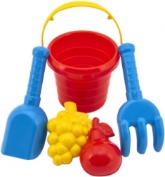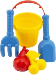 Questo set da sabbia include un secchiello colorato, una paletta, dei rastrelli e due formine, perfettamente adatti alle piccole mani dei bambini. Realizzato in plastica di qualità e resistente, assicura una lunga durata anche durante i giochi più intensi sulla sabbia.