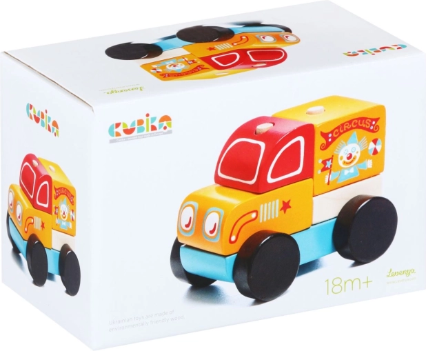Scopri la gioia del gioco con il Camion del circo di CUBIKA. Questo puzzle di legno è composto da cinque pezzi che i bambini possono facilmente assemblare. Il giocattolo è progettato per stimolare le capacità sensomotorie e la creatività dei bambini.