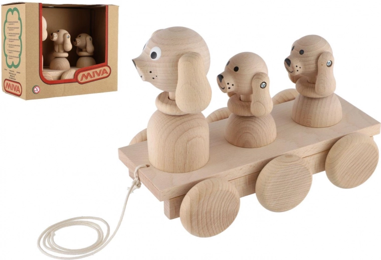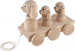 Il grazioso giocattolo trainabile in legno farà felice ogni bambino. Durante il movimento, tre cagnolini si muovono in modo adorabile, favorendo i primi passi e sviluppando motricità e coordinazione. Il legno naturale di qualità e la finitura liscia garantiscono un gioco sicuro e divertente.