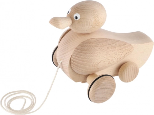 Paperella trainabile in legno naturale 17 cm. Muove la testa durante il movimento, favorisce motricità ed equilibrio. Struttura resistente, adatta a bambini dai 3 anni.