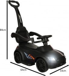 macchinina cavalcabile 3in1 con maniglione di guida, luci e suoni – nera