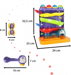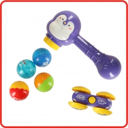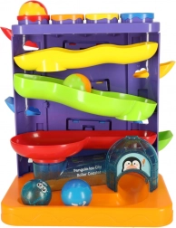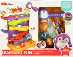 Il percorso interattivo con il simpatico pinguino è una scelta perfetta come primo gioco tecnico. I bambini inseriscono le biglie nei fori superiori e, con l’aiuto del martelletto, le “lanciano” in pista in sicurezza. Le piste colorate e le discese fluide offrono tanto divertimento e favoriscono pazienza e concentrazione.