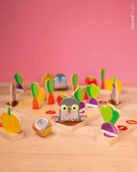 Divertente gioco da tavolo in legno per famiglie per 2–4 giocatori del marchio JANOD, in cui raccogli frutti dell’orto nel cestino evitando le talpe. Sviluppa rapidità, prontezza, pazienza e riconoscimento dei colori. La qualità del legno, le bellissime illustrazioni e le regole semplici lo rendono un regalo ideale per bambini e adulti.