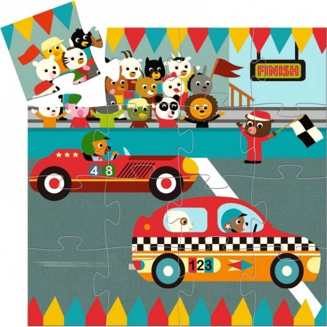 Divertiti e vivi l'emozione con il puzzle Auto da Corsa, che porta un'atmosfera da corsa con simpatici animali piloti.