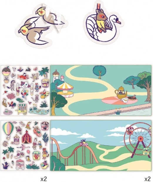 I bambini possono continuamente creare nuove storie grazie alle infinite possibilità di posizionamento degli adesivi.