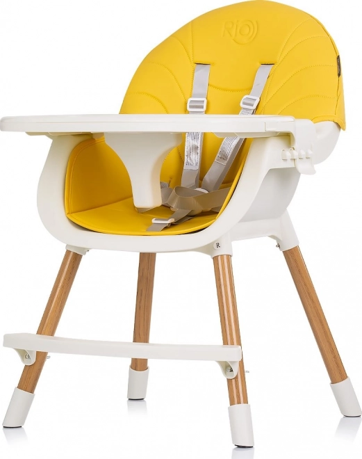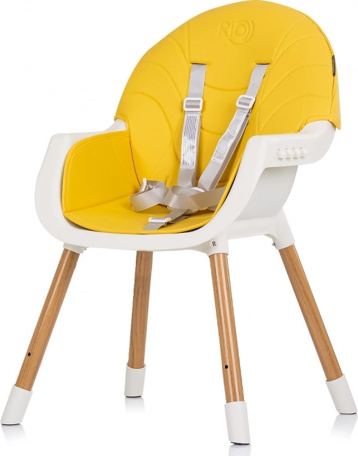 CHIPOLINO Rio 2in1 è un seggiolone moderno e versatile, che si trasforma in pochi istanti da seggiolone alto a basso. Grazie al morbido sedile con rivestimento in pelle, si mantiene facilmente pulito e offre comodità ai bambini durante ogni pasto.