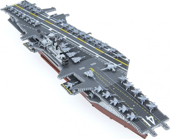 Il modello finito della portaerei, con mini aerei sul ponte, risalta come decorazione e pezzo da collezione.