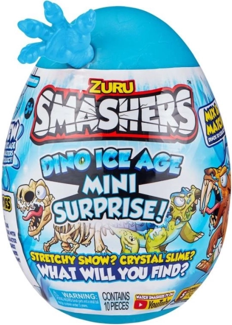 - 1 uovo, 1 mini uovo Smashers, 1 dinosauro da assemblare, 1 sostanza elastica, 1 slime, 1 slime congelato, 1 adesivo