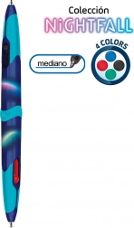 L'impugnatura ergonomica morbida lungo tutta la lunghezza fino alla punta favorisce una presa naturale e riduce l'affaticamento della mano anche durante sessioni di scrittura prolungate. La finitura metallica aggiunge un tocco moderno al tuo corredo scolastico o da ufficio.