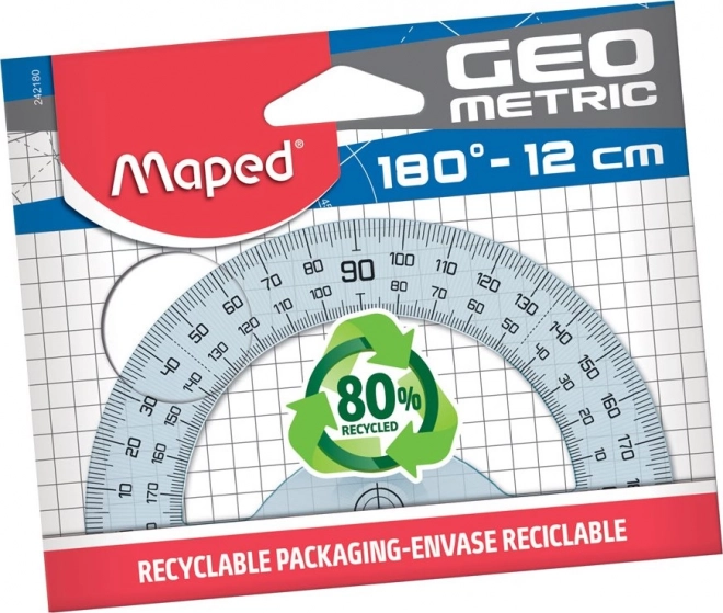 Pratico goniometro trasparente del marchio Maped con lunghezza di 12 cm, ideale per le lezioni di matematica e geometria. Offre misurazione precisa degli angoli, materiale trasparente per una migliore leggibilità e dimensioni compatte per l’astuccio.
