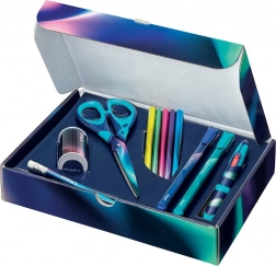 Scoprite l'elegante collezione Maped Nightfall in un box regalo di cartone con tonalità metalliche, che piacerà sia ai bambini che agli adulti. Tutti gli strumenti indispensabili sono ordinati e pronti all'uso immediato: ideale come regalo, per lo zaino e per le creazioni a casa.