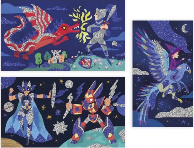 Janod offre un'attività divertente ed educativa per bambini dai 6 anni in su. Questo set contiene tre immagini colorate che i bambini possono decorare con due diverse tonalità di sabbia e brillantini. Usando una spatola, è facile rimuovere le parti adesive e distribuire i bellissimi brillantini sulle immagini. Il completamento di un'immagine divertente richiede solo 30 minuti.