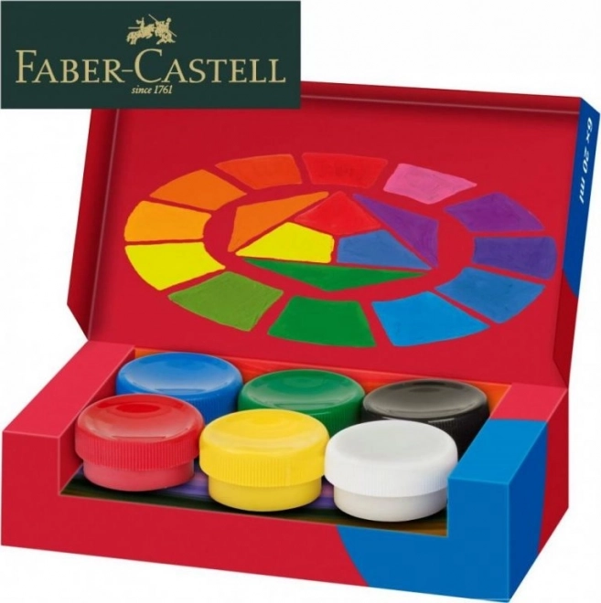 Il set di colori a tempera Faber-Castell contiene 6 colori intensamente pigmentati ideali per superfici diverse, disposti in pratici vasetti con coperchio a vite.