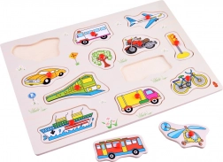 I puzzle di veicoli in legno portano divertimento e apprendimento. Con questi puzzle, i bambini imparano a riconoscere diversi mezzi di trasporto e migliorano le loro abilità motorie. Ognuno dei 12 pezzi è facilmente afferrabile grazie a un piccolo pomello rosso.