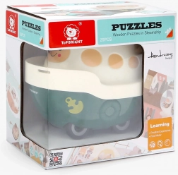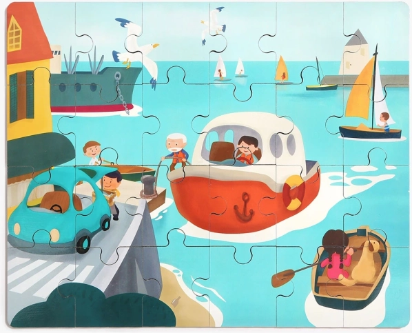 Questo originale 2 in 1 unisce il divertimento del gioco con i veicoli alla gioia del puzzle. Il puzzle in legno a tema trasporti sostiene la concentrazione, la motricità fine e lo sviluppo della logica. La barchetta è un giocattolo indipendente su ruote e all’interno nasconde uno spazio sicuro per riporre i pezzi o i tesori dei bambini.