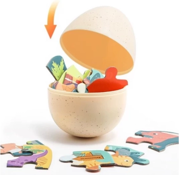 Il pratico uovo di plastica funge sia da confezione accattivante sia da contenitore. Si apre facilmente, così i bambini possono riporre e trasportare il puzzle più volte. Un regalo perfetto per i piccoli amanti dei dinosauri e una scelta ideale per sviluppare il pensiero logico.
