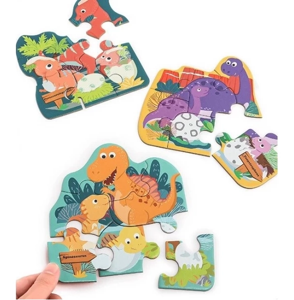 Scopri il divertimento con un puzzle per bambini in un originale packaging a forma di uovo. Il set include 3 puzzle separati da 6 pezzi ciascuno con motivi di dinosauri. I pezzi sono contrassegnati sul retro con la stessa stampa e la numerazione per un ordinamento più semplice e un assemblaggio rapido. L’uovo di plastica si apre facilmente e funge da pratico contenitore per i puzzle e i piccoli tesori.