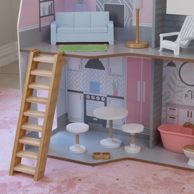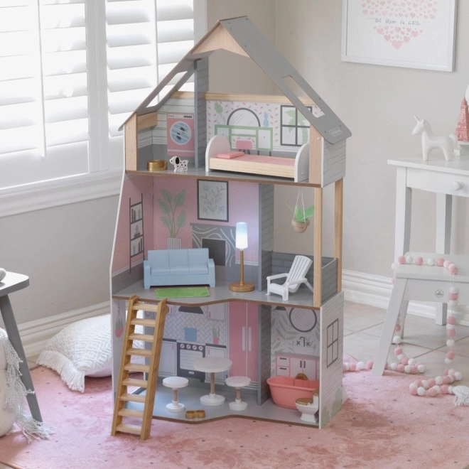 La casa delle bambole in legno KidKraft Alina offre ai bambini un ambiente realistico per sviluppare la fantasia. I tre piani ben studiati includono un’ampia cucina con zona pranzo, soggiorno con veranda, accogliente mansarda con camera da letto e un secondo bagno. Grazie all’ingombro snello, si adatta perfettamente anche alle camerette piú piccole.