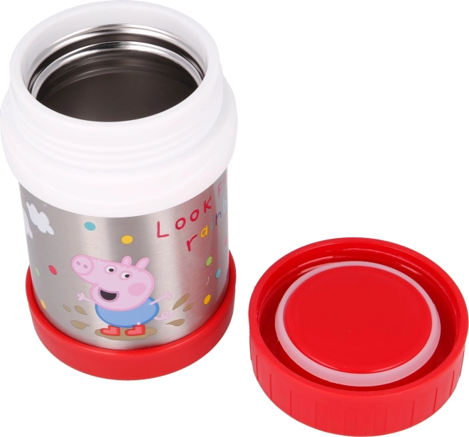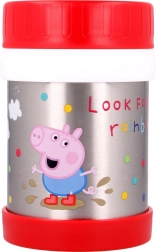 Il pratico thermos alimentare in acciaio inox con l’allegro motivo PEPA PIG è perfetto per zuppe, pasta, piatti di verdure o di carne e per il latte caldo. Grazie alla struttura di qualità, aiuta a mantenere la temperatura dei pasti per diverse ore, che siate a scuola, in gita o al parco giochi.