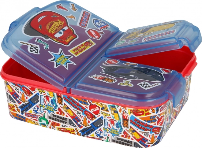 Il coperchio del box è decorato con motivi accattivanti del film "Cars", amati dai bambini.