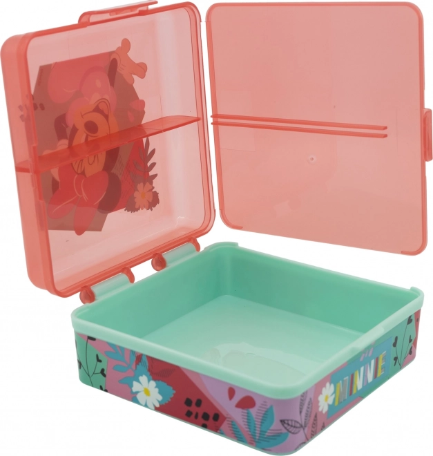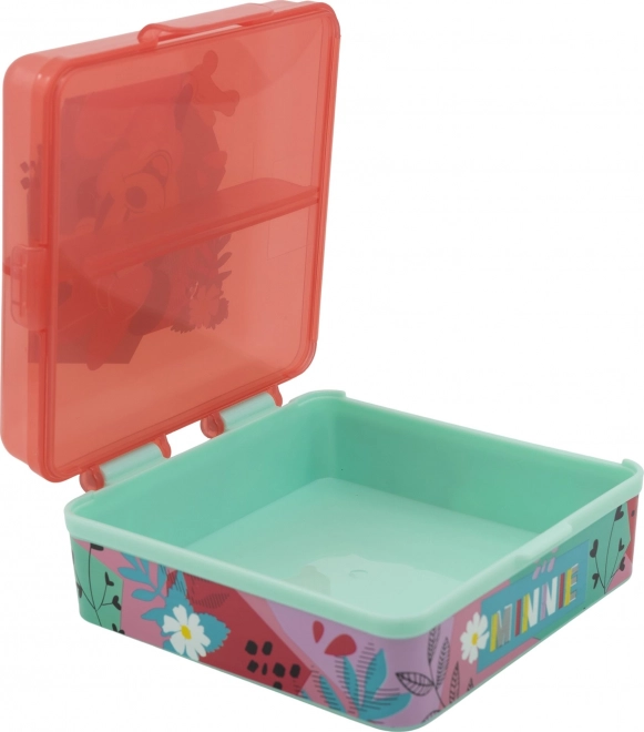 Pratica e stilosa scatola per pranzo al sacco per bambini con motivo Minnie Mouse. Realizzata in materiale resistente, che resiste a urti e cadute quotidiane. Decorata con motivi attraenti che i bambini adorano.