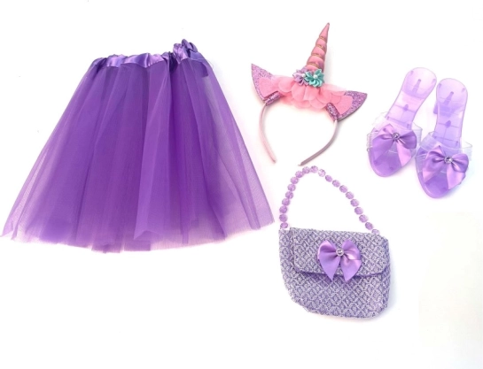 Realizza il sogno di ogni piccola principessa con questo set completo per il travestimento - include scarpette, borsetta, gonnellina e cerchietto, ideale per i giochi di ruolo e per lo sviluppo della fantasia.