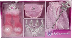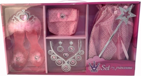Entra nel mondo delle fiabe con un set magico per piccole principesse! Include gonnellina, scarpette, corona, borsetta, bacchetta magica e gioielli – tutto per una trasformazione immediata in principessa e ore di gioco creativo.