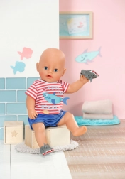 La tenera dotazione da notte per bambole BABY born 43 cm con motivo squalo farà felice ogni bambino. Il set include una maglietta a righe, pantaloncini blu e scarpette grigie a forma di squalo. L’outfit è progettato per le manine dei bambini, quindi è facile da mettere e togliere. Il design allegro “Save the Ocean” e i materiali confortevoli garantiscono grande divertimento nei giochi di ruolo anche prima di andare a dormire.