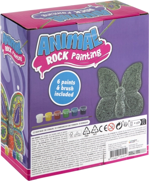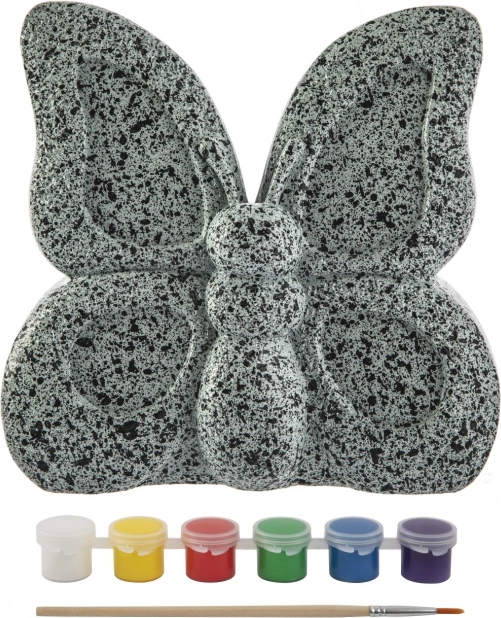 Questo set creativo per dipingere una pietra a forma di farfalla offre ai bambini ore di divertimento artistico. Grazie alle 6 colori incluse e al pennello, possono realizzare una decorazione originale, allenare la motricità fine e combinare i colori secondo la loro fantasia.